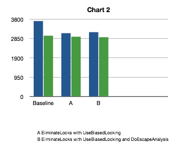 >java -server -XX:-DoEscapeAnalysis EATest thread unsafe: 941 ms. thread safe: 1960 ms. Thread safety overhead: 208% >java -server -XX:+DoEscapeAnalysis EATest thread unsafe: 941 ms. thread safe: 1966 ms. Thread safety overhead: 208%