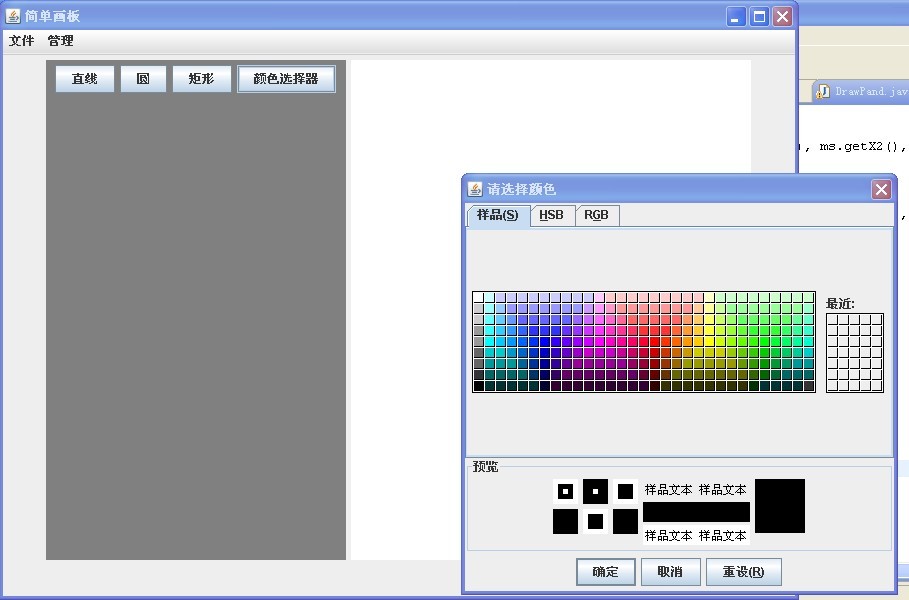 画板随笔画板随便写的,加了些按钮,加其他的按钮方法一样,我就没加了要注意的是总结出抽象类形状还有画布的