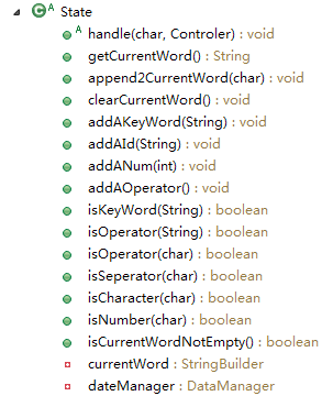 State有一些子类,代表了自动机的各种状态,并实现了相应的handle方法。如图:
