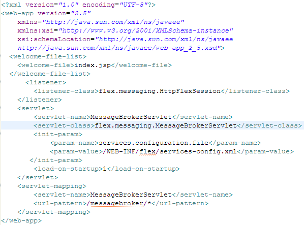第四步:把blazeds/WEB-INF/web.xml文件中的部分文件拷贝到项目的web.xml文件中。