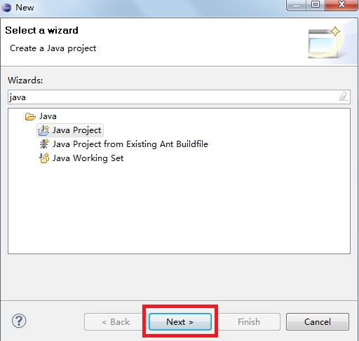 然后在弹出框中输入java,左键点击[java Project],然后点击[next](图3.2)