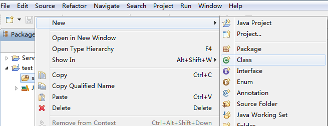 双击打开右边的test工程文件,如图3.3,src上点击右键弹出列表如图3.6