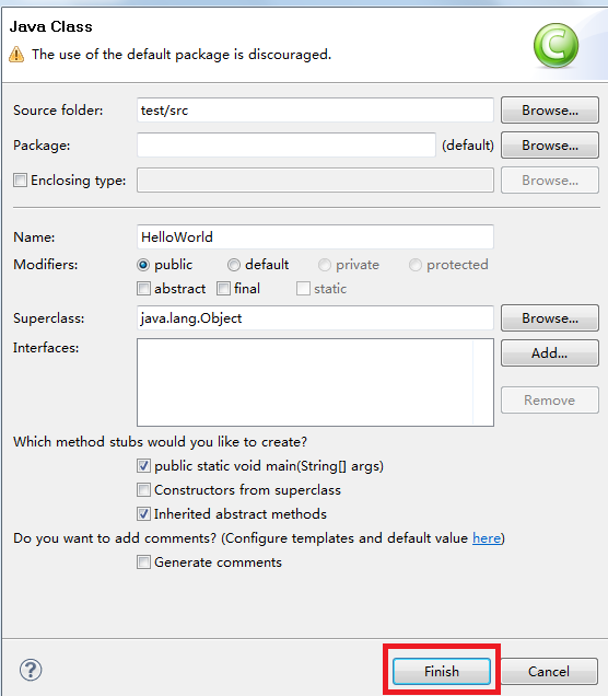 5.如图3.7输入HelloWorld和勾选,点击[finish]