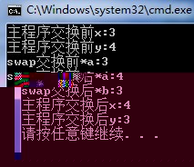 cout<<"主程序交换后"<<"x:"<<x<<endl;  //4
