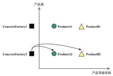 所谓的抽象工厂是指一个工厂等级结构可以创建出分属于不同产品等级结构的一个产品族中的所有对象。如果用图来描述的话,如下图: