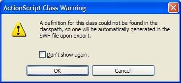注:一个ActionScript类是完成当前任务所必需的,所以这是我们所期望的行为。然而,Flash Professional自动生成的类是不能被编辑的,它们仅供Flash创作工具在发布SWF文件时使用,理解这一点是非常重要的。