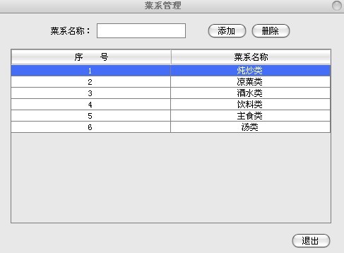 酒店管理系统之菜系管理界面(swing)上面代码得出如下图: