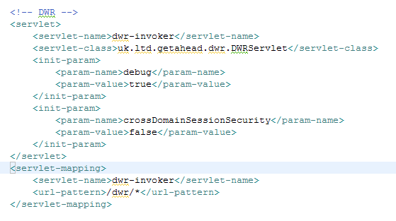 DWR 核心的配置 DWR是基于Ajax的原理实现的。大体的操作步骤为1.在web.xml文件中创建DWR的映射2.创建DWR的核心的配置文件3.书写DWR类4.在jsp中引入相应的js文件5.在js文件中操作DWR 注意 function(result){} reuslt为dwr类返回的结果第一个参数可以是本就是穿进去的,function()函数为回调函数