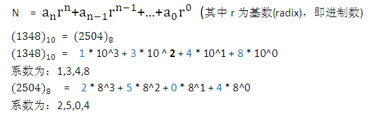 数N的r进制可以表示为: