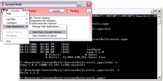 习会更深入一些,因此我们要使用命令行窗口——只要点击InstantRails左上角的“I”字按钮(那是