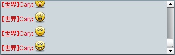 因为项目需要,自己仿照其他flash游戏中的聊天写了一个带表情的聊天,思路还是基于网上的使用多个TextField来组织聊天信息的显示,每个TextField上再摆放一层用于显示表情的图层,这样做效率还是不错的,不过不可以一次选择多行了,目前也没有做表情的复制功能,所以选中复制的时候只能复制占位符