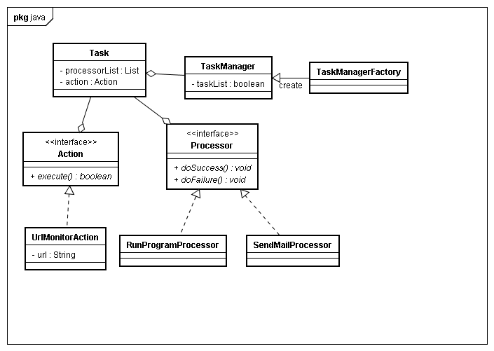主要设计思想是:一个任务有一个动作和多个处理器,任务,动作,处理器都可以不断扩展,自由搭配。