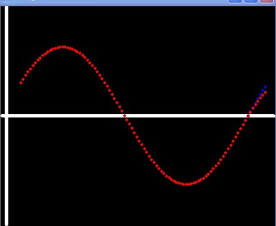 #include "cv.h"#include "highgui.h"#include "ml.h"#include <cmath>#include <iostream>#include <iomanip>using namespace std;//以下例子用来拟合正弦曲线int main(int argc, char **argv){   int num_train = 100;   int num_test = 100;   CvMat *train_data = cvCreateMat(num_train, 1, CV_32FC1);   CvMat *train_response = cvCreateMat(num_train, 1, CV_32FC1);   IplImage *dst=cvCreateImage(cvSize(400,320),8,3);   cvZero(dst);   dst->origin=1;   cvLine( dst, cvPoint(1,160), cvPoint(400,160), cvScalar(255,255,255,0), 3, 8, 0 );   cvLine( dst, cvPoint(8,1), cvPoint(8,320), cvScalar(255,255,255,0), 3, 8, 0 );   CvMat *test_data = cvCreateMat(num_test, 1, CV_32FC1);   CvMat *test_response = cvCreateMat(num_train, 1, CV_32FC1);   //initilize the training data and testing data   float *fptr_data = NULL, *fptr_response = NULL;   const float PI = 3.1415926f;   int i;   for(i = 0; i < train_data->rows; i++)   {      fptr_data = (float *)(train_data->data.ptr + i * train_data->step);       *fptr_data = 2*PI/train_data->rows *i;      //cout <<*fptr_data<<" ";      fptr_response = (float *)(train_response->data.ptr + i * train_response->step);       *fptr_response = sin(*fptr_data);      //cout <<*fptr_response<<endl;   }   for(i = 0; i < test_data->rows; i++)   {      fptr_data = (float *)(test_data->data.ptr + i * test_data->step);       *fptr_data = (2*PI/train_data->rows *i+0.5f);       fptr_response = (float *)(test_response->data.ptr + i * test_response->step);       *fptr_response = sin(*fptr_data);    }    CvSVM mysvm;    CvSVMParams param(103, 2, 2, 1, 1, 10, 1, 0.0001, NULL,       cvTermCriteria(CV_TERMCRIT_EPS, 100, 0.0001));   mysvm.train(train_data, train_response, 0, 0, param);    float tmp;   CvMat *sample = cvCreateMat(1,1, CV_32FC1);    cout<<"x\t\t"<<"y\t\t"<<"pre\t\t"<<"err"<<endl;      cvNamedWindow("output",1);   for(i = 0; i < test_data->rows; i++)   {      fptr_data = (float *)(test_data->data.ptr + i * test_data->step);      *((float *)sample->data.ptr) = *fptr_data;      tmp = mysvm.predict(sample);  float tmp2 = mysvm.predict(sample, false);      fptr_response = (float *)(test_response->data.ptr + i * test_response->step);            cout<<setprecision(4)<<*fptr_data<< "\t\t";      cout<<setprecision(4)<<*fptr_response<<"\t\t";      cout<<setprecision(4)<<tmp<<"\t\t";      cout<<setprecision(4)<<tmp - *fptr_response<<endl;      *fptr_data=*fptr_data*180/PI;      *fptr_response=100*(*fptr_response)+160;      tmp=100*tmp+160;      cvCircle( dst , cvPointFrom32f( cvPoint2D32f(*fptr_data,*fptr_response) ) ,          2, cvScalar(255,0,0,0) , -1 , 8 , 0 );      cvCircle( dst , cvPointFrom32f( cvPoint2D32f(*fptr_data,tmp) ) ,          2, cvScalar(0,0,255,0) , -1 , 8 , 0 );      cvShowImage("output",dst);      cvWaitKey(20);   }   cvWaitKey(0);   cvReleaseImage(&dst);   cvReleaseMat(&train_data);   cvReleaseMat(&test_data);   cvReleaseMat(&train_response);   cvReleaseMat(&test_response);   cvReleaseMat(&sample);   return 0;}