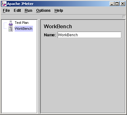 现在,请使用%JMeter%/bin下面的jmeter.bat批处理文件来启动JMeter的可视化界面,下面的工作都将在这个可视化界面界面上进行操作。下面的图片是JMeter的可视化界面的屏幕截图。