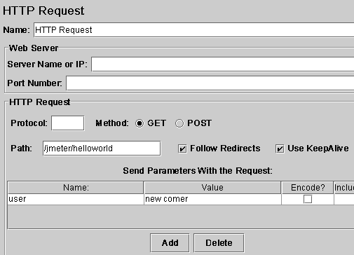 现在我们需要增加http请求了,他也是我们测试的内容主体部分。你可以通过下面的步骤来增加性的http请求: