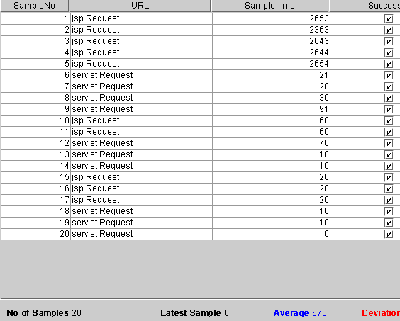 作者使用了Tomcat作为Web服务器进行测试,被测试的内容是一个jsp文件和一个servlet,jsp文件调用 JavaBean、打印相关信息,servlet接受用户参数、调用javabean、输出相关信息。详细的内容请参考作者提供的JMeter.war的内容。