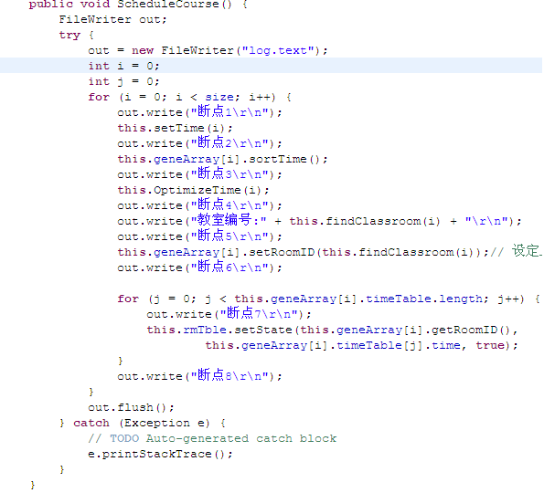 把向txt文件输出信息 第一步:FileWriter out;第二步:out = new FileWriter("log.text");第四步:out.write("断点1\r\n");第五步:out.flush();第六步:在外面加上try{}catch{};