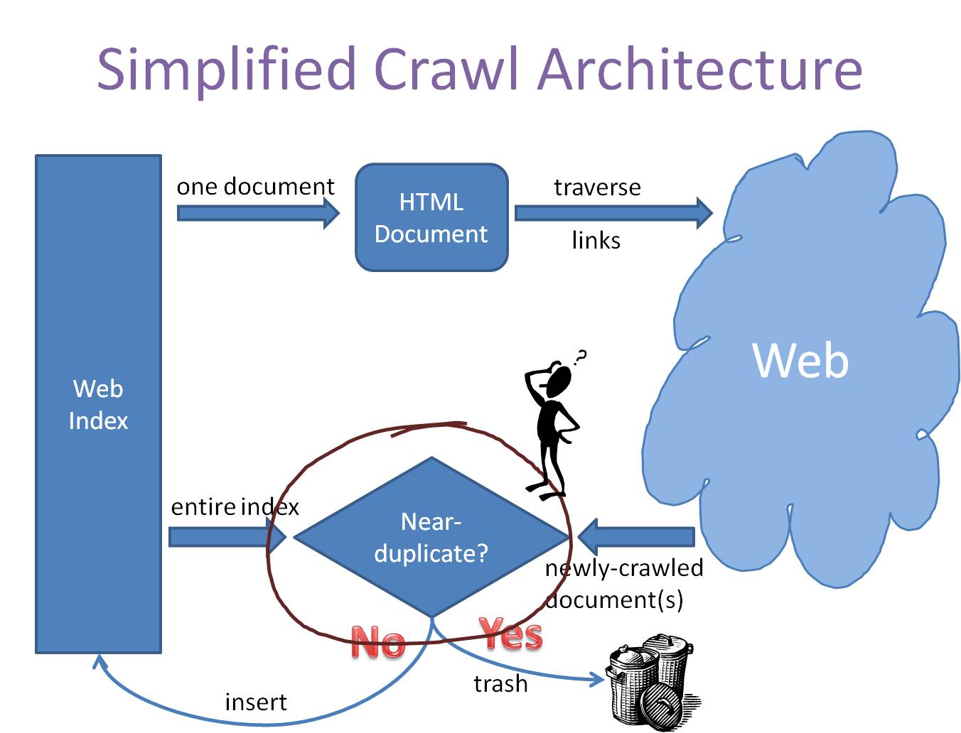 事实上,传统比较两个文本相似性的方法,大多是将文本分词之后,转化为特征向量距离的度量,比如常见的欧氏距离、海明距离或者余弦角度等等。两两比较固然能很好地适应,但这种方法的一个最大的缺点就是,无法将其扩展到海量数据。例如,试想像Google那种收录了数以几十亿互联网信息的大型搜索引擎,每天都会通过爬虫的方式为自己的索引库新增的数百万网页,如果待收录每一条数据都去和网页库里面的每条记录算一下余弦角度,其计算量是相当恐怖的。