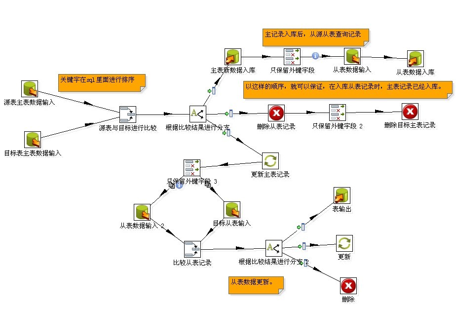 kettle实现主从表增量迁移示例: