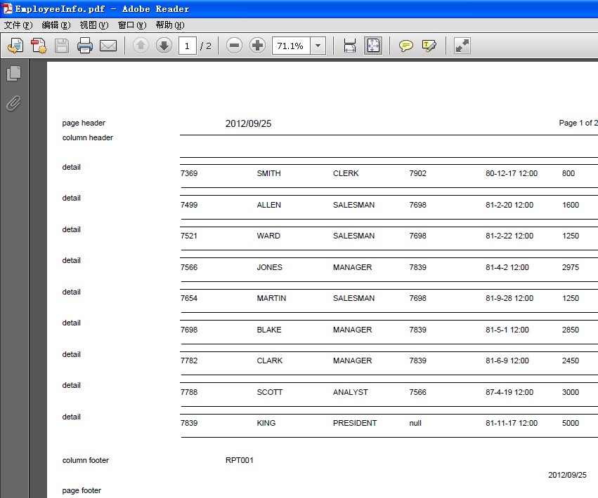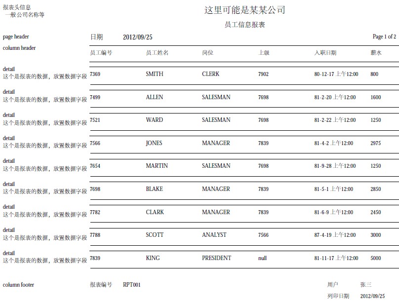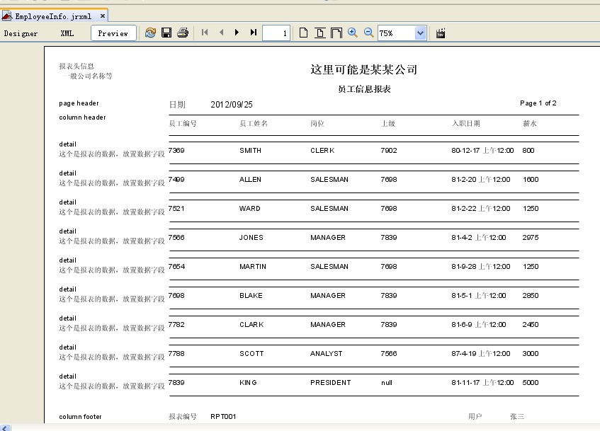 结果看到报表上面的中文都没有显示,因为我们没有设置报表的字体以及添加支持中文的第三方jar。