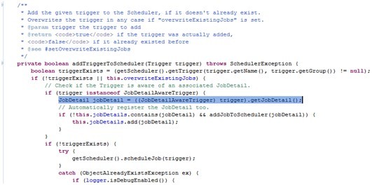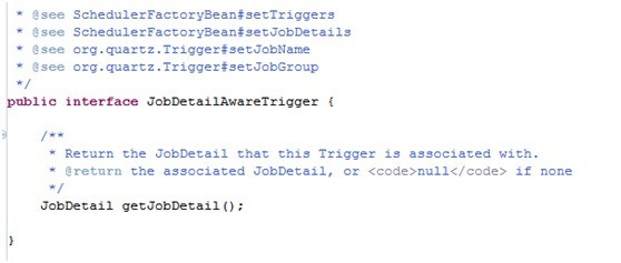 Spring对JobDetail进行了封装,却未实现序列化接口,所以持久化的时候会产生NotSerializable问题,这也是网上一直在那边叫嚣为什么不能持久化到数据库问题,哥今天看了下Spring源码,发现Spring对Quartz持久化的问题.