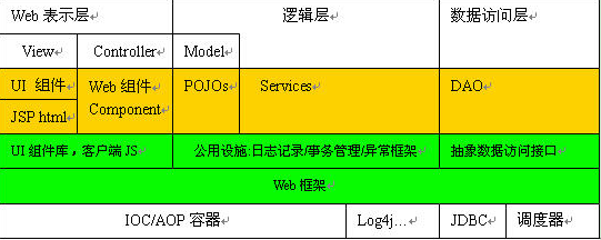 在开源社区提供了一种不错的搭建项目框架的方法:struts+spring+hibernate。当然也有不少其他的方式,不过总体为前端采取mvc模式展现,中间逻辑采取spring的bean装配方式,以及事务申明,后台采取hibernate/ ibatis /jdbc作为持久层,加上其他一些辅助支撑组件,组成了service+dao+orm的方式,前后台通过POJO传递数据(现在也与时俱进了,有用xml和json方式传递数据的)。Serivce采取的是贫血模式,把组件提供的功能当作dao的功能来使用,所以在组件这层面就得考虑组件自身的数据如何与上层业务数据的集成,当只有组件是充血模型方式,才能保证上层业务数据的提交一致性;否则自身组件不维护信息状态,全部持久化到表中,在事务回滚的时刻,就不能保证组件的信息数据也能同步回滚。