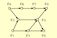 public enum VertexState {UNVISITED,VISITED,PASSED;//未访问,已访问,已经过}import java.util.Set;import java.util.List;import java.util.HashSet;import java.util.ArrayList;import java.util.Collections;//顶点类class Vertex { private String label; private VertexState state;//顶点状态 public Vertex(String lab) { label = lab; state = VertexState.UNVISITED; } public VertexState getState(){ return state; } public void setState(VertexState state){ this.state=state; } public String toString(){ return label; } } //有向图的邻接矩阵实现class Graph { private final int MAX_VERTS = 30; private Vertex vertexList[]; // 存放顶点的数组 private int adjMat[][]; // 邻接矩阵 private int nVerts; // 当前的顶点数 public Graph() { vertexList = new Vertex[MAX_VERTS]; adjMat = new int[MAX_VERTS][MAX_VERTS]; nVerts = 0; for(int y=0; y<MAX_VERTS; y++) for(int x=0; x<MAX_VERTS; x++) adjMat[x][y] = 0; } public void addVertex(Vertex v)//在图中添加一个顶点 { vertexList[nVerts++] = v; } //在图中增加一条边,从start到end public void addEdge(int start, int end) { adjMat[start][end] = 1; } /** * 返回v顶点所关联的邻结点 * @param v * @return */ private Set<Vertex> getNeighbors(Vertex v){ Set<Vertex> vSet = new HashSet<Vertex>(); int index=getIndex(v); if(index==-1) return null; for(int i=0;i<nVerts;i++) if(adjMat[index][i]==1) vSet.add(vertexList[i]); return vSet;} //返回顶点在vertexList数组中的索引 private int getIndex(Vertex v){ for(int i=0;i<nVerts;i++) if(vertexList[i]==v) return i; return -1; } /** * 全部节点设为未访问 */ private void allUnVisted(){Vertex v=null;int len = nVerts; for(int i = 0; i < len ; i++){v = vertexList[i];if(v.getState() != VertexState.UNVISITED){v.setState(VertexState.UNVISITED);} } } private boolean containsVertex(Vertex v){ int index=getIndex(v); if(index!=-1) return true; else return false; } private VertexState getState(Vertex v){return v.getState();} private VertexState setState(Vertex v, VertexState state) {VertexState preState = v.getState();v.setState(state);return preState;} /** * 深度优先遍历一个顶点 * @param * @param graph * @param v * @param checkCycle * @return */ public List<Vertex> dfs(Vertex v,boolean checkCycle){allUnVisted();List<Vertex> vList = new ArrayList<Vertex>();dfsHandler(v,checkCycle,vList);return vList;} private void dfsHandler(Vertex v,boolean checkCycle,List<Vertex> vList){ Set<Vertex> neighbors = null;if(!containsVertex(v)){ throw new IllegalStateException("不存在该顶点");}setState(v, VertexState.PASSED);neighbors = getNeighbors(v);VertexState state = null;for(Vertex neighbor : neighbors){ state = getState(neighbor); if(state == VertexState.UNVISITED){//未遍历, // System.out.println(neighbor+","); dfsHandler(neighbor, checkCycle, vList);}else if(state == VertexState.PASSED && checkCycle){// throw new IllegalStateException("存在一个环");}}setState(v, VertexState.VISITED);//访问结束设为已访问vList.add(v); // System.out.println("++"+v); } /** * 图的拓扑排序 */public List<Vertex> topo(){ List<Vertex> vList = new ArrayList<Vertex>(); allUnVisted(); for(int i=0;i<nVerts;i++){ if(getState(vertexList[i]) == VertexState.UNVISITED){try{ dfsHandler(vertexList[i], true, vList);}catch (IllegalStateException e) { throw new IllegalStateException("图有一个环");} } }Collections.reverse(vList);return vList; }}public class DFSApp { public static void main(String[] args) { Graph theGraph = new Graph(); Vertex v1=new Vertex("c0"); Vertex v2=new Vertex("c1"); Vertex v3=new Vertex("c2"); Vertex v4=new Vertex("c3"); Vertex v5=new Vertex("c4"); Vertex v6=new Vertex("c5"); Vertex v7=new Vertex("c6"); Vertex v8=new Vertex("c7"); Vertex v9=new Vertex("c8"); theGraph.addVertex(v1); // 0 theGraph.addVertex(v2); // 1 theGraph.addVertex(v3); // 2 theGraph.addVertex(v4); // 3 theGraph.addVertex(v5); // 4 theGraph.addVertex(v6); // 5 theGraph.addVertex(v7); // 6 theGraph.addVertex(v8); // 7 theGraph.addVertex(v9); // 8 theGraph.addEdge(0, 6); // c0->c6 theGraph.addEdge(0, 2); // c0->c2 theGraph.addEdge(3, 5); // c3->c5 theGraph.addEdge(3, 8); // c3->c8 theGraph.addEdge(1, 2); // c1->c2 theGraph.addEdge(1, 4); // c1->c4 theGraph.addEdge(2, 3); // c2->c3 theGraph.addEdge(6, 7); // c6->c7 theGraph.addEdge(7, 8); // c7->c8 theGraph.addEdge(4, 3); // c4->c3 theGraph.addEdge(4, 5); // c4->c5 //theGraph.addEdge(3, 1); // c3->c1 System.out.print("Visits: "); List<Vertex> vl=theGraph.topo(); // List<Vertex> vl=theGraph.dfs(v1,false); System.out.println(vl); } }