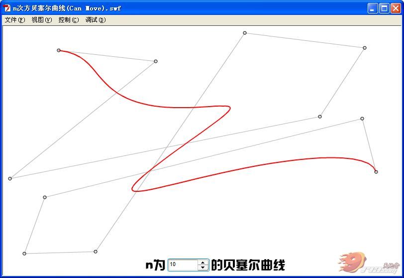 2)n次方贝塞尔曲线(Can Move版)(曲线可以移动,而效率不错哟,包括10次贝塞尔曲线)