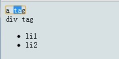 <body> <a contentEditable="true">a tag</a></br> <div contentEditable="false">div tag</div> <ul contentEditable="true"> <li>li1</li> <li>li2</li> </ul> </body>