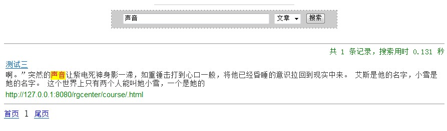 实现了spring的InitializingBean接口,让服务器启动,bean初始化的时候去建立索引剩下的就是配置文件了 于action就不列出代码了,很简单了,只需要传搜索方法的那几个参数过去就可以了.最后看一下搜索结果示例图: