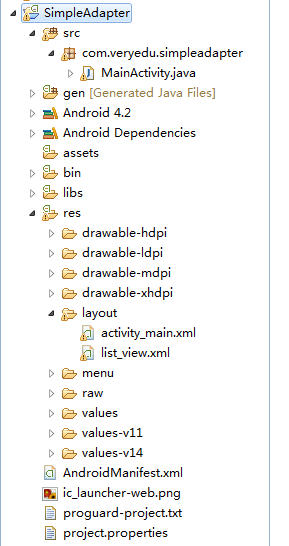 <RelativeLayout xmlns:android="http://schemas.android.com/apk/res/android" xmlns:tools="http://schemas.android.com/tools" android:layout_width="match_parent" android:layout_height="match_parent" tools:context=".MainActivity" > <TextView android:layout_width="wrap_content" android:layout_height="wrap_content" android:layout_centerHorizontal="true" android:layout_centerVertical="true" android:text="SimpleAdapter" /> <ListView android:layout_width="fill_parent" android:layout_height="wrap_content" android:id="@+id/text_view" ></ListView> </RelativeLayout>