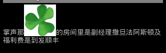 FloatImageText view = new FloatImageText(this);view.setText("电视里发生了房间里是积分拉萨积分拉萨积分拉萨减肥啦空间 撒旦法发大水发撒旦法看完了鸡肉味容积率为热键礼物i经二路文件容量为积分拉萨解放路口上飞机撒离开房间爱水立方法拉圣诞节福禄寿");Bitmap bm = BitmapFactory.decodeResource(getResources(), R.drawable.a);view.setImageBitmap(bm, 30, 30);import java.util.ArrayList;import android.content.Context;import android.graphics.Bitmap;import android.graphics.Canvas;import android.graphics.Color;import android.graphics.Paint;import android.graphics.Rect;import android.graphics.Paint.FontMetrics;import android.util.AttributeSet;import android.util.DisplayMetrics;import android.view.View;/** * 模拟CSS中的float浮动效果 */public class FloatImageText extends View { private Bitmap mBitmap; private final Rect bitmapFrame = new Rect(); private final Rect tmp = new Rect(); private int mTargetDentity = DisplayMetrics.DENSITY_DEFAULT; private final Paint mPaint = new Paint(Paint.ANTI_ALIAS_FLAG); private String mText; private ArrayList<TextLine> mTextLines; private final int[] textSize = new int[2]; public FloatImageText(Context context, AttributeSet attrs, int defStyle) { super(context, attrs, defStyle); init(); } public FloatImageText(Context context, AttributeSet attrs) { super(context, attrs); init(); } public FloatImageText(Context context) { super(context); init(); } private void init() { mTargetDentity = getResources().getDisplayMetrics().densityDpi; mTextLines = new ArrayList<TextLine>(); mPaint.setTextSize(14); mPaint.setColor(Color.RED); } @Override protected void onMeasure(int widthMeasureSpec, int heightMeasureSpec) { int w = 0, h = 0; //图片大小 w += bitmapFrame.width(); h += bitmapFrame.height(); //文本宽度 if(null != mText && mText.length() > 0) { mTextLines.clear(); int size = resolveSize(Integer.MAX_VALUE, widthMeasureSpec); measureAndSplitText(mPaint, mText, size); final int textWidth = textSize[0], textHeight = textSize[1]; w += textWidth; //内容宽度 if(h < textHeight) { //内容高度 h = (int) textHeight; } } w = Math.max(w, getSuggestedMinimumWidth()); h = Math.max(h, getSuggestedMinimumHeight()); setMeasuredDimension( resolveSize(w, widthMeasureSpec), resolveSize(h, heightMeasureSpec)); } @Override protected void onDraw(Canvas canvas) { //绘制图片 if(null != mBitmap) { canvas.drawBitmap(mBitmap, null, bitmapFrame, null); } //绘制文本 TextLine line; final int size = mTextLines.size(); for(int i = 0; i < size; i++) { line = mTextLines.get(i); canvas.drawText(line.text, line.x, line.y, mPaint); } System.out.println(mTextLines); } public void setImageBitmap(Bitmap bm) { setImageBitmap(bm, null); } public void setImageBitmap(Bitmap bm, int left, int top) { setImageBitmap(bm, new Rect(left, top, 0, 0)); } public void setImageBitmap(Bitmap bm, Rect bitmapFrame) { mBitmap = bm; computeBitmapSize(bitmapFrame); requestLayout(); invalidate(); } public void setText(String text) { mText = text; requestLayout(); invalidate(); } private void computeBitmapSize(Rect rect) { if(null != rect) { bitmapFrame.set(rect); } if(null != mBitmap) { if(rect.right == 0 && rect.bottom == 0) { final Rect r = bitmapFrame; r.set(r.left, r.top, r.left + mBitmap.getScaledHeight(mTargetDentity), r.top + mBitmap.getScaledHeight(mTargetDentity)); } } else { bitmapFrame.setEmpty(); } } private void measureAndSplitText(Paint p, String content, int maxWidth) { FontMetrics fm = mPaint.getFontMetrics(); final int lineHeight = (int) (fm.bottom - fm.top); final Rect r = new Rect(bitmapFrame);// r.inset(-5, -5); final int length = content.length(); int start = 0, end = 0, offsetX = 0, offsetY = 0; int availWidth = maxWidth; TextLine line; boolean onFirst = true; boolean newLine = true; while(start < length) { end++; if(end == length) { //剩余的不足一行的文本 if(start <= length - 1) { if(newLine) offsetY += lineHeight; line = new TextLine(); line.text = content.substring(start, end - 1); line.x = offsetX; line.y = offsetY; mTextLines.add(line); } break; } p.getTextBounds(content, start, end, tmp); if(onFirst) { //确定每个字符串的坐标 onFirst = false; final int height = lineHeight + offsetY; if(r.top >= height) { //顶部可以放下一行文字 offsetX = 0; availWidth = maxWidth; newLine = true; } else if(newLine && (r.bottom >= height && r.left >= tmp.width())) { //中部左边可以放文字 offsetX = 0; availWidth = r.left; newLine = false; } else if(r.bottom >= height && maxWidth - r.right >= tmp.width()) { //中部右边 offsetX = r.right; availWidth = maxWidth - r.right; newLine = true; } else { //底部 offsetX = 0; availWidth = maxWidth; if(offsetY < r.bottom) offsetY = r.bottom; newLine = true; } } if(tmp.width() > availWidth) { //保存一行能放置的最大字符串 onFirst = true; line = new TextLine(); line.text = content.substring(start, end - 1); line.x = offsetX; mTextLines.add(line); if(newLine) { offsetY += lineHeight; line.y = offsetY; } else { line.y = offsetY + lineHeight; } start = end - 1; } } textSize[1] = offsetY; } class TextLine { String text; int x; int y; @Override public String toString() { return "TextLine [text=" + text + ", x=" + x + ", y=" + y + "]"; } }}