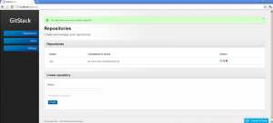 GitStack will show your repository in the repository tab. You just need to click on the green button on the right to import your repository into GitStack. The import will convert your repository into a bare repository. Bare repositories are recommended when your repository is used by a server.