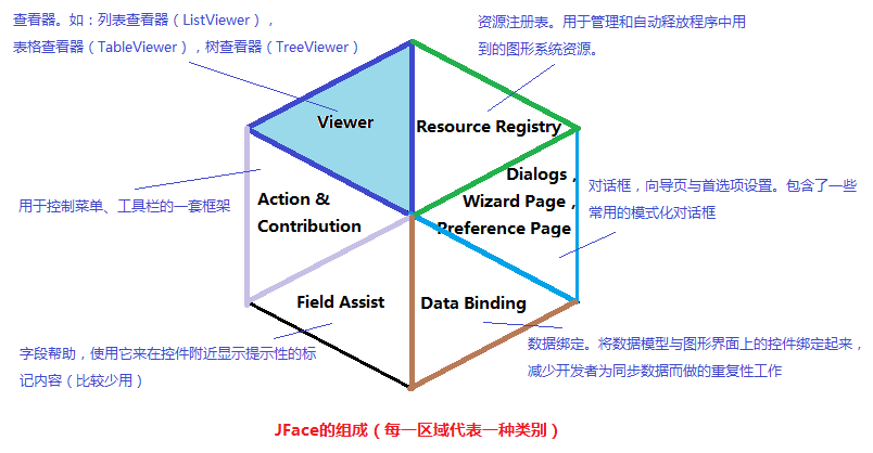 JFace是基于SWT的一套图形工具包,它没有为SWT提供任何新的功能,只是将一些繁琐而且常用的图形操作封装了起来,使得开发工作更加简便。JFace完全使用SWT API进行开发,并没有涉及到SWT中任何平相关的部分,所以JFace没有不同平台版本之分。
