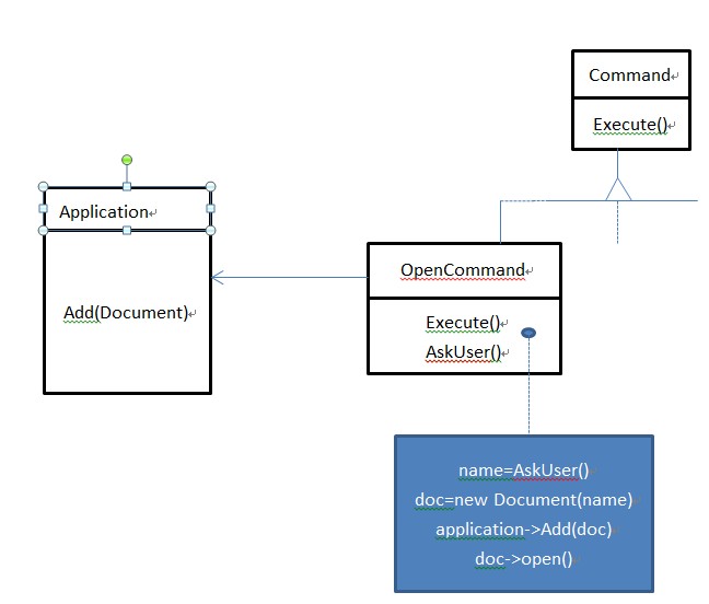而OpenCommand的Execute操作却有所不同:它提示用户输入一个文档名,创建一个相应的文档对象,将其加入作为接受者的应用对象中,并打开该文档。