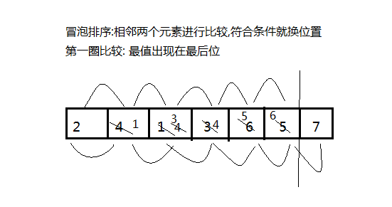 public static void main(String[] args) {// TODO Auto-generated method stub int [] arr={1,2,5,6,4,7,3}; bubbleSort(arr); System.out.println(Arrays.toString(arr));}//冒泡排序public static void bubbleSort(int[] arr) {for(int x=0;x<arr.length-1;x++){//-x:让每一次比较的元素减少,-1 :不让下标越界for (int y = 0; y < arr.length-1-x; y++) { if(arr[y]>arr[y+1]){int temp = arr[y];arr[y] = arr[y+1];arr[y+1] = temp;}}}}//数组中交换两个位置的值public static void swarp(int arr[],int a.int b){//方法一: int temp=arr[a]; arr[a]=arr[b]; arr[b]=temp;//方法二 arr[a]=arr[a]^arr[b]; arr[b]=arr[a]^arr[b]; arr[a]=arr[a]^arr[b];}