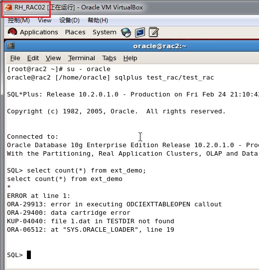 在VirtualBox虚拟机环境下,搭建Oracle RAC环境,结合NFS(Network File System),RAC各节点都能够正常访问外部表。即重点是要有各个节点都能够访问的共享存储(目录),其它共享机制或方式的实现没有尝试,也不太了解。