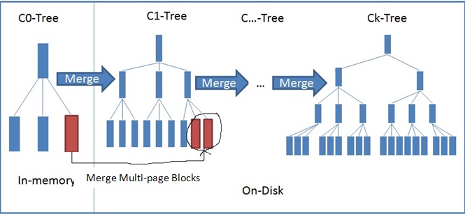 LSM-tree是一个优秀的算法,思想来源于日志文件系统,本身是为提高B-树在更新插入数据时的性能而提出来的,主要优点就是通过将很多小文件的存取转换为连续的大批量传输,使得对于文件系统的大多数存取都是顺序性的,从而提高磁盘带宽利用率;故障恢复速度快。它对数据写入主要分以下三个阶段: