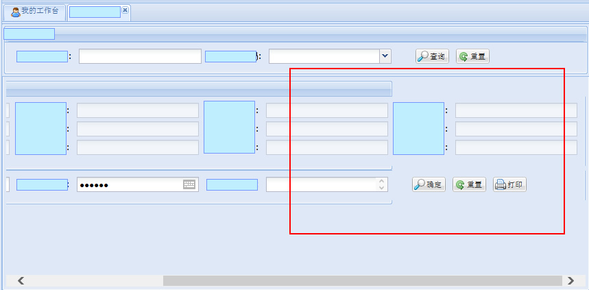 //布局如下:var cpanel = new Ext.Panel({ region : 'center', bodyStyle : 'border:none;', frame : true, layout : 'border', autoScroll : true, items: [bForm ,cForm ]});