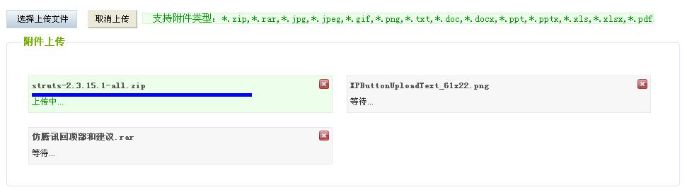 看下面这个图片,这是我在项目中的SWFUpload上传附件的效果(其实仿的是126邮箱做的)。