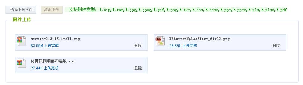 上传完成。(上传成功的附件不消失,上传发生错误文件消失。)