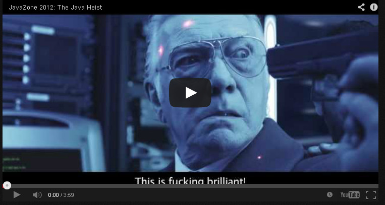 JavaZone历年的Java大片 JavaZone历年制作的关于Java的电影宣传片:2013: Java末日 中文 YouTube2012: Java打劫 中文 YouTube2011: Java阴魂不散 中文 YouTube2010: Java风云 中文 YouTube2010: Lady Java 中文 YouTube