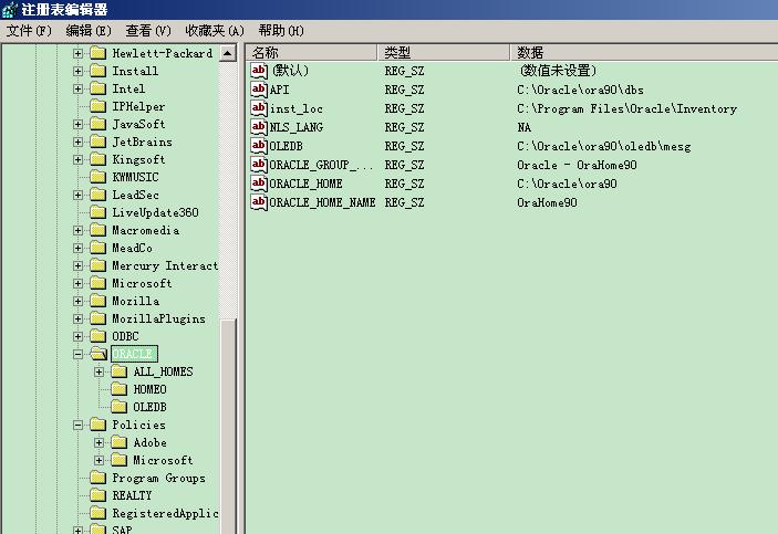 oracle未卸载干净解决办法开始-》运行 输入regedit,确定,如下图删去oracle下的所有即可