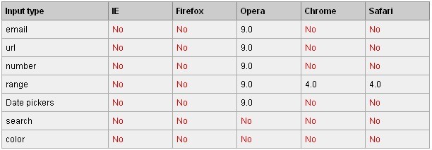 注释:Opera 对新的输入类型的支持最好。不过您已经可以在所有主流的浏览器中使用它们了。即使不被支持,仍然可以显示为常规的文本域。