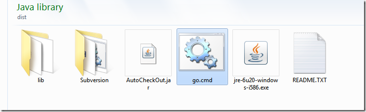 然后把jre和相关的东东放进去,然后在里面加入一个go.cmd(bat)(名字随意啦)