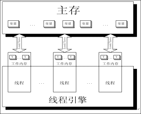 根据Java Language Specification中的说明, jvm系统中存在一个主内存(Main Memory或Java Heap Memory),Java中所有变量都储存在主存中,对于所有线程都是共享的。