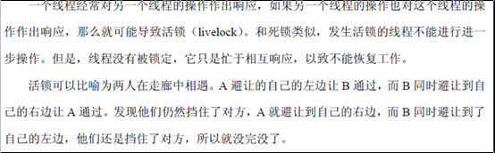 并发应用程序按照及时方式执行的能力成为活性,一般包括三种类型的问题,死锁,饿死和活锁。