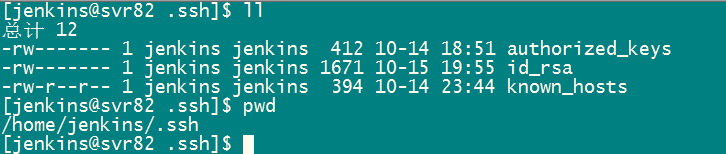用相似的方法在git服务器上给git用户添加一个公钥(具体步骤就不重复了),然后将私钥文件(id_rsa)分别拷贝到两台奴隶节点的当前用户家目录下的 .ssh 下(要注意在Linux系统下这个文件的权限必须是600)