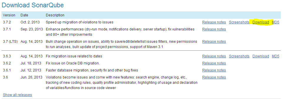 首选到 http://www.sonarqube.org/downloads/ 下载最新的SonarQube。