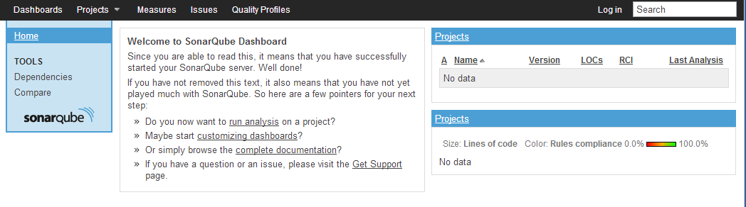 在浏览器中输入 http://172.16.12.83:9000/ 看到 sonar 的界面。
